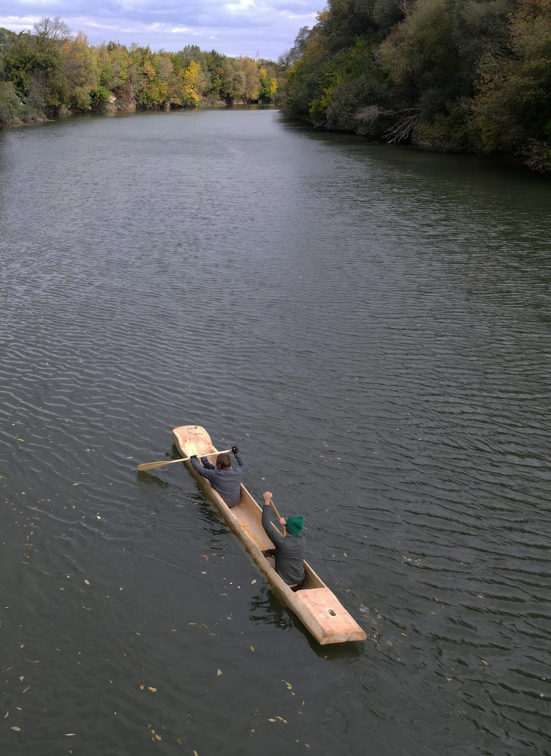 Za miesto testovania nášho monoxylu sme vybrali rieku Bodrog. Vo všeobecnosti sú monoxyly plavidlá vhodné pre pomaly tečúce toky riek a stojaté vody v jazerách. Bodrog túto podmienku spĺňa a navyše je dostatočne široký na testovanie manévrov. Dôležitá bola aj kratšia vzdialenosť od miesta výroby člnu kvôli náročnosti transportu. Vyplávali sme v chladných jesenných a veterných dňoch z obce Ladmovce. Priemernou rýchlosťou asi 3 km/h sme pomaly preplávali 12 km po prúde rieky. Testovali sme tiež plavbu proti prúdu rieky, čo sa na pomaly tečúcom toku dalo zvládnuť. S nárastom vetra je však plavba proti prúdu náročnejšia, stále však zvládnuteľná. Monoxyl je vo všeobecnosti menej stabilným plavidlom než iné typy člnov. Čím je monoxyl širší, tým sa zvyšuje jeho stabilita, ale na úkor rýchlosti člnu. Exemplár zo Šamorína sa mohol používať na prepravu ľudí a materiálu na kratšie vzdialenosti. Ďalšie testovanie jeho repliky nám snáď povie viac o vzťahu ľudí a riek v dávnej minulosti.